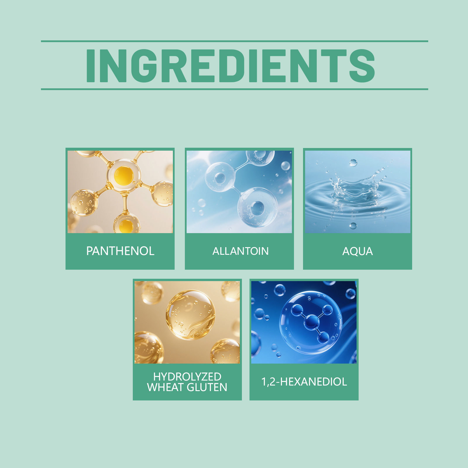 Ingredients: Active ingredients: panthenol, allantoin, hydrolyzed wheat gluten.